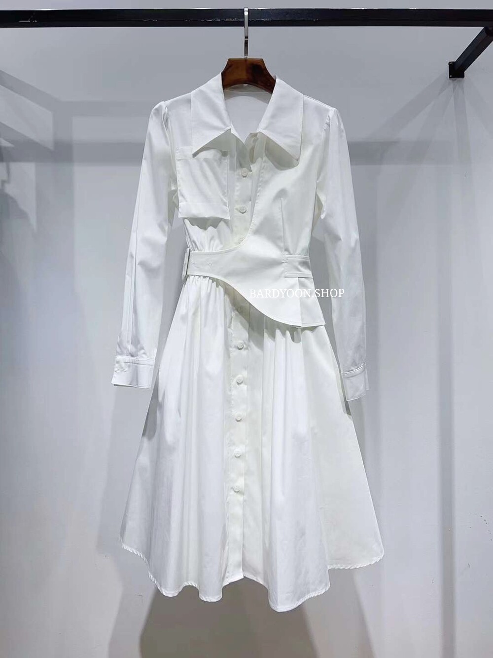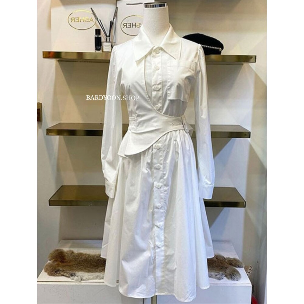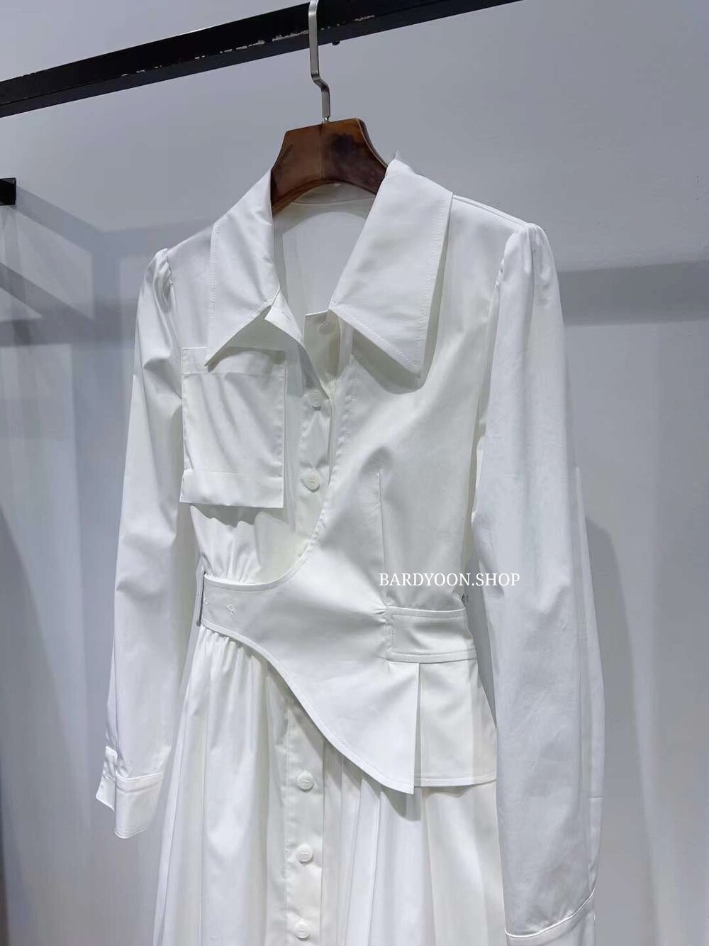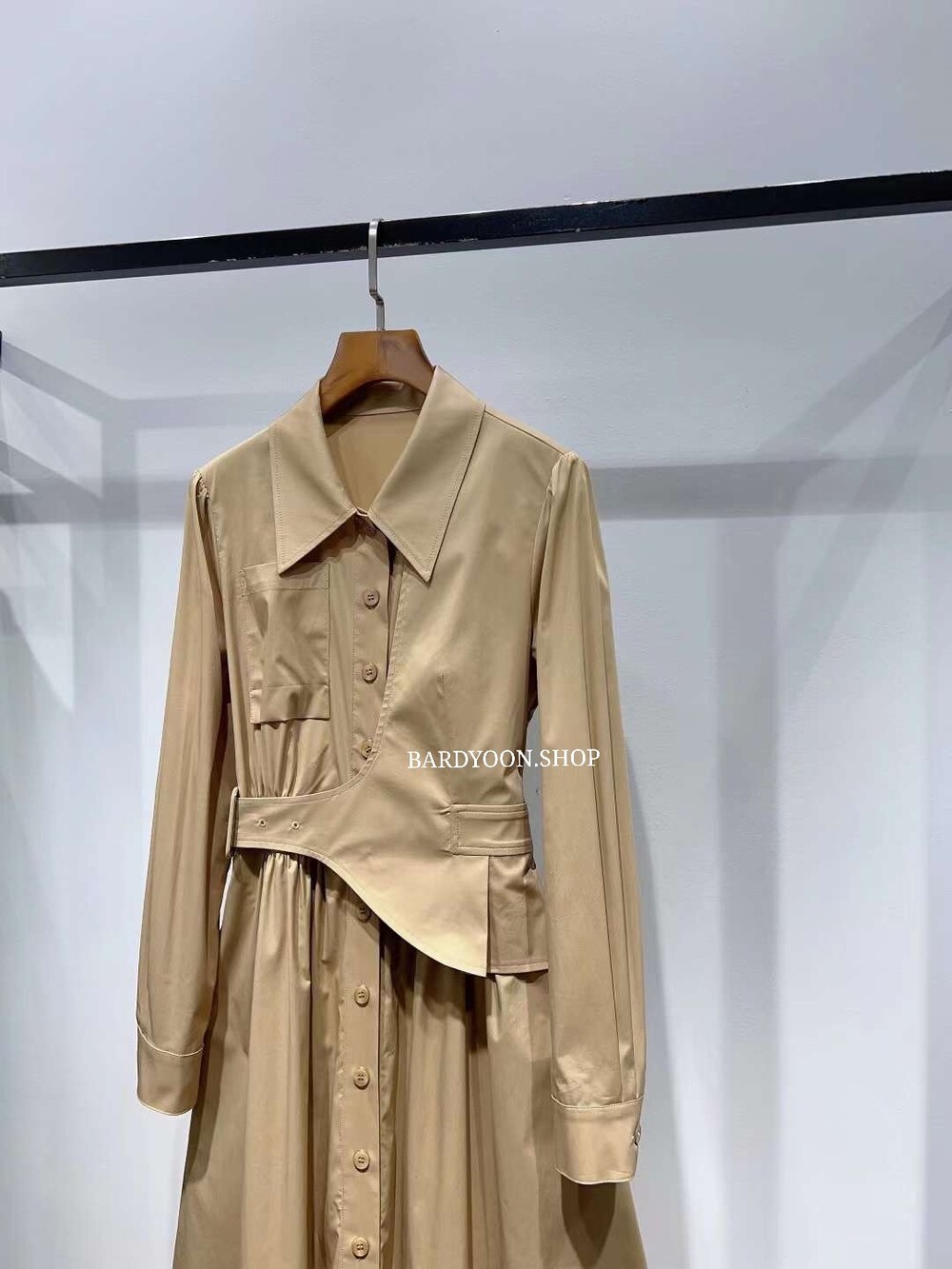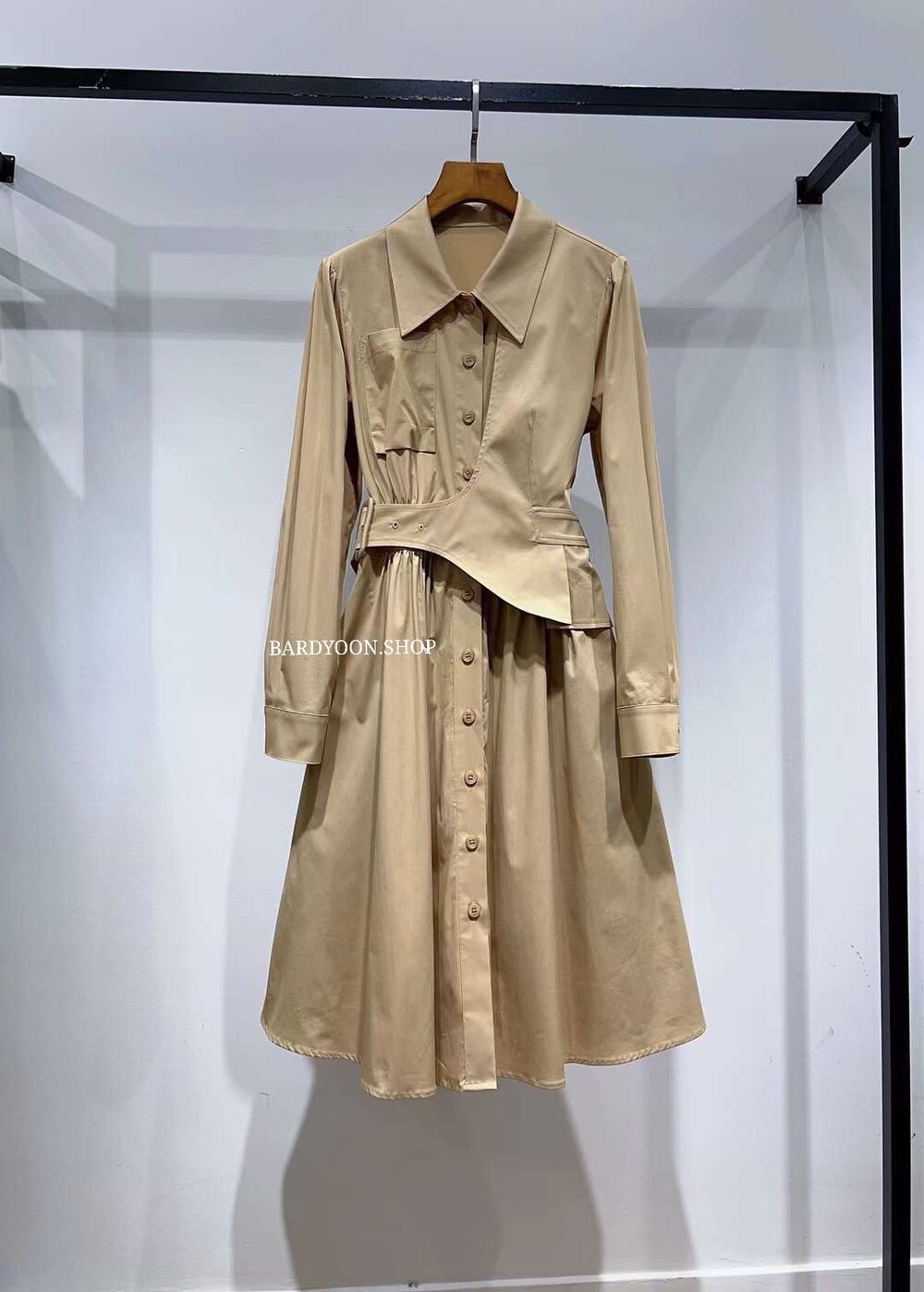 (수입) P 레인 셔츠 랩 롱 플레어 원피스 2color