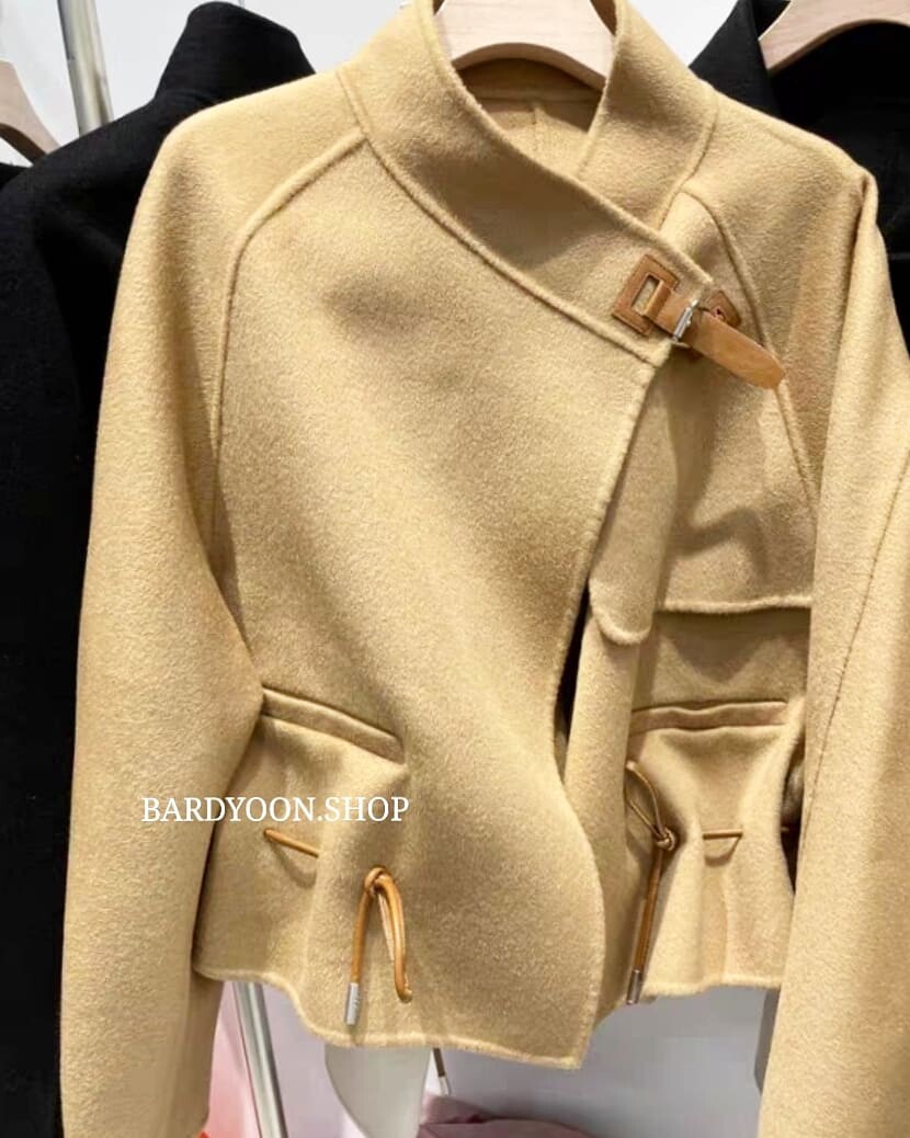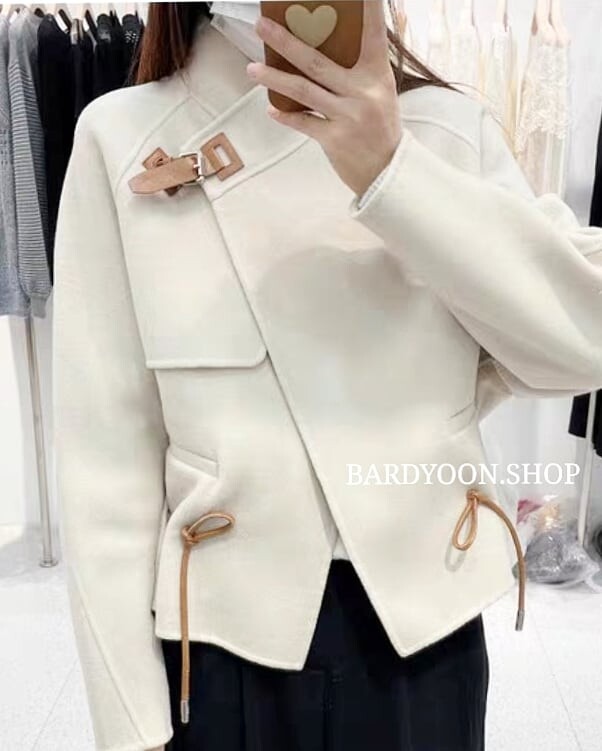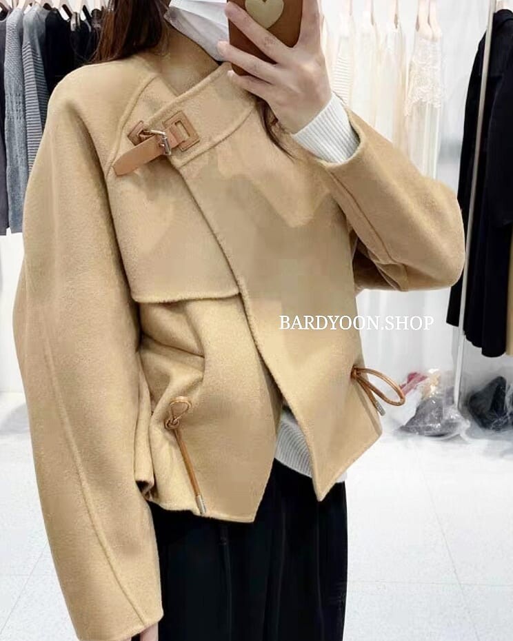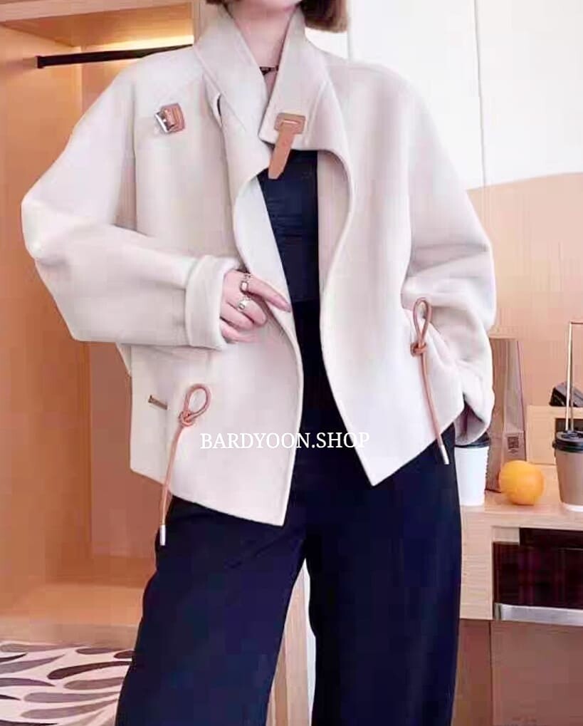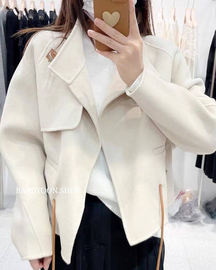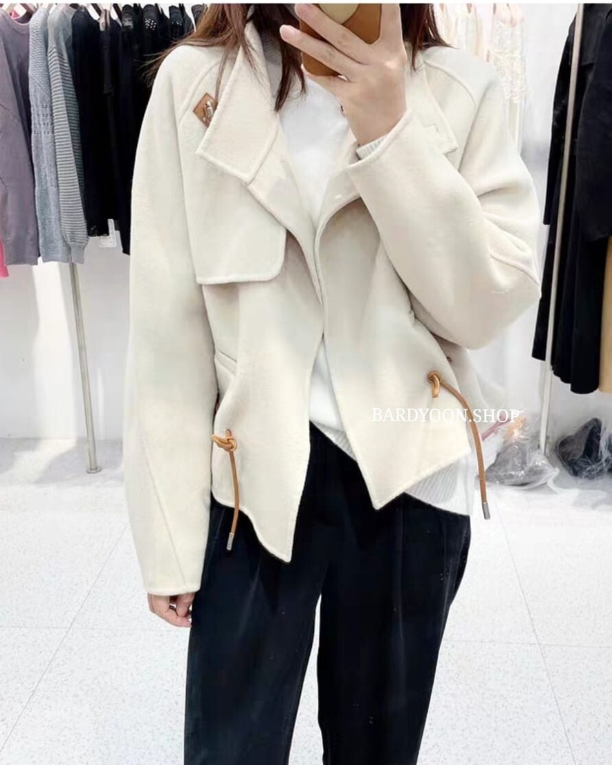 (수입) H 루즈핏 가죽 스트링 울 자켓 3color