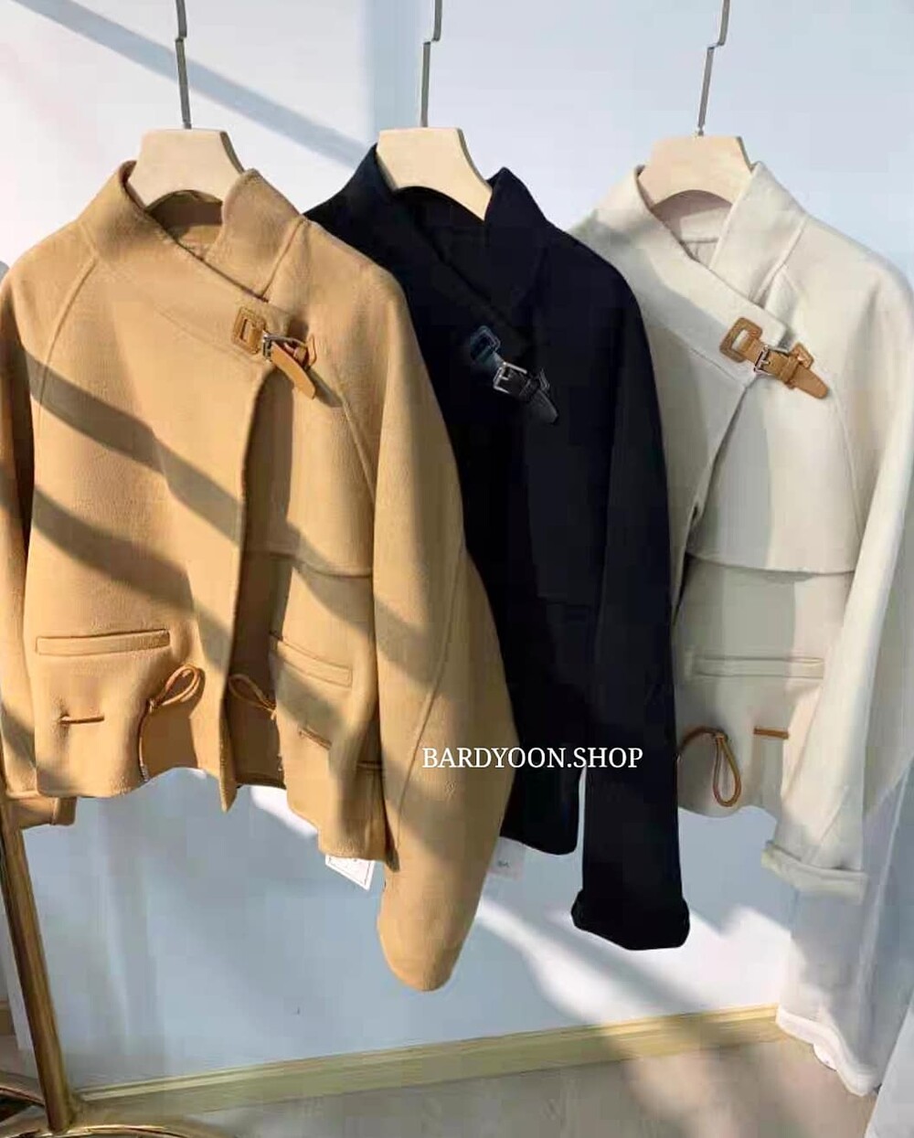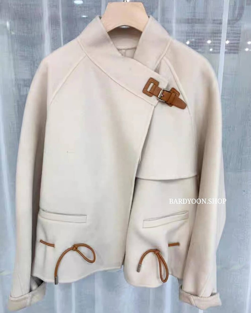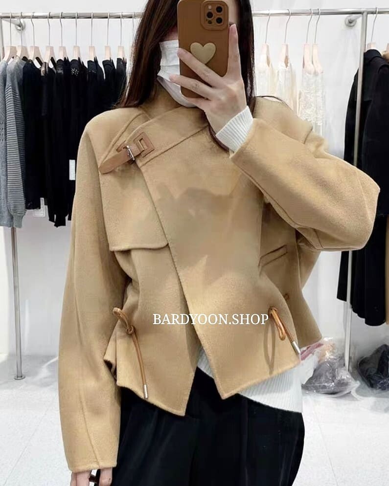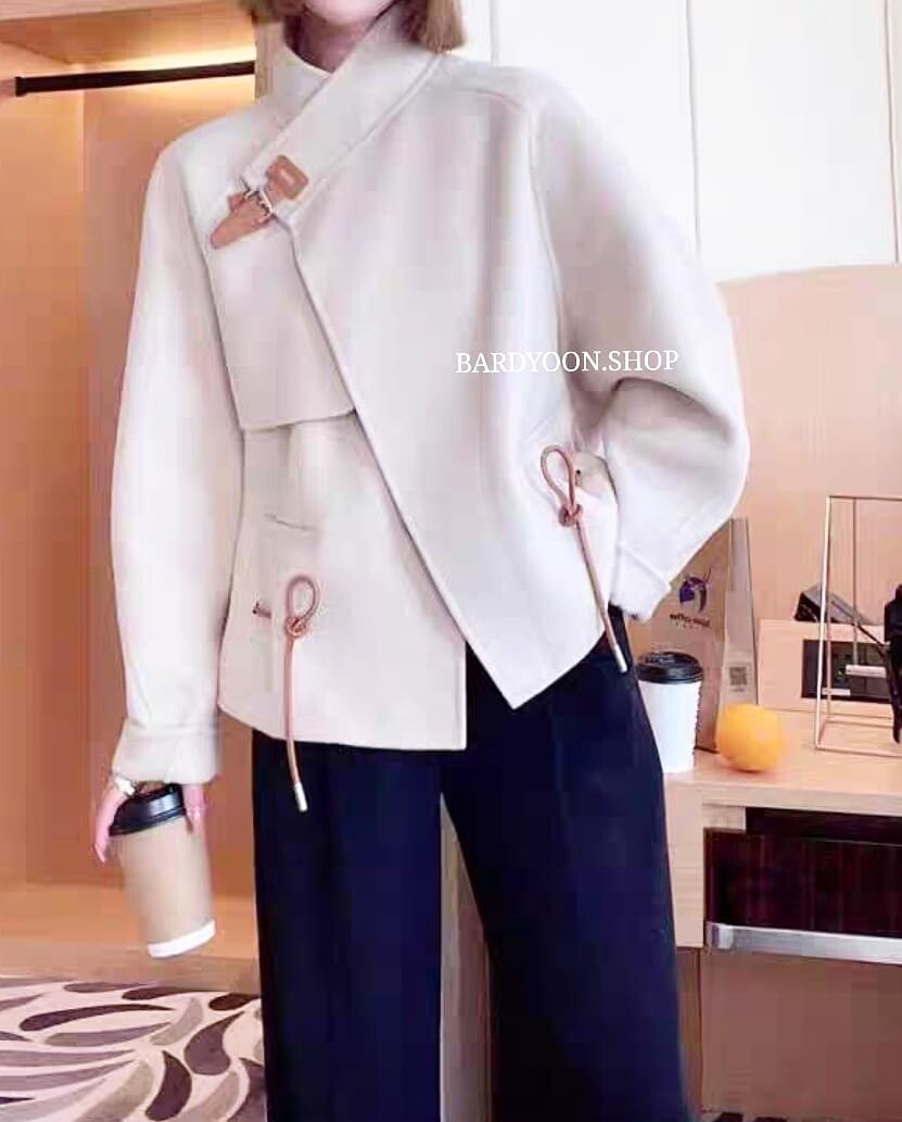 (수입) H 루즈핏 가죽 스트링 울 자켓 3color