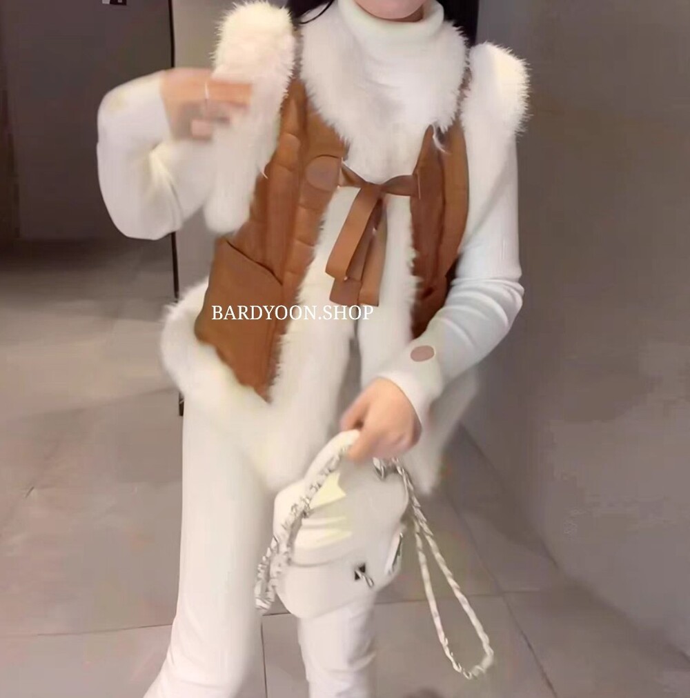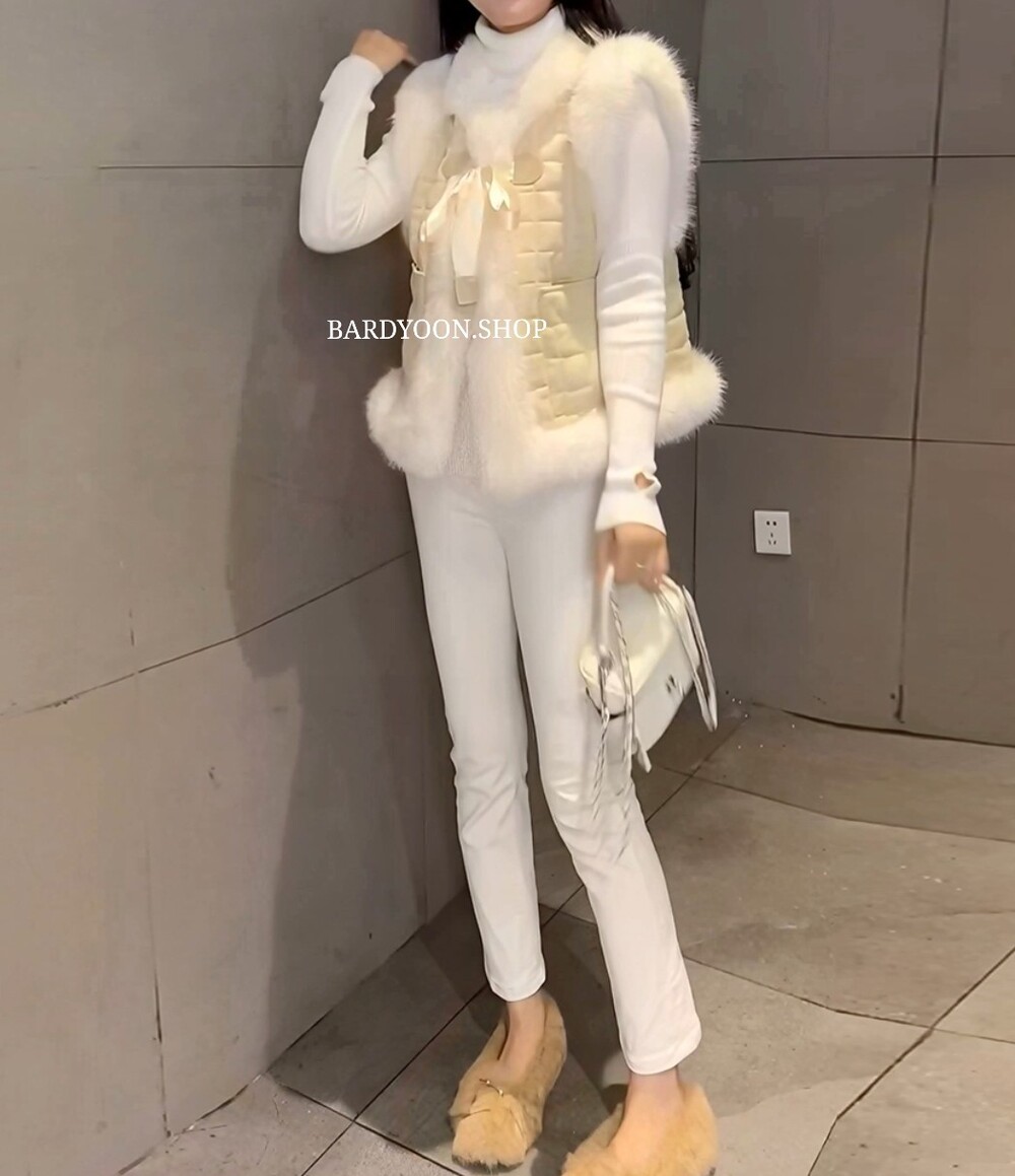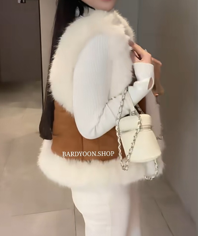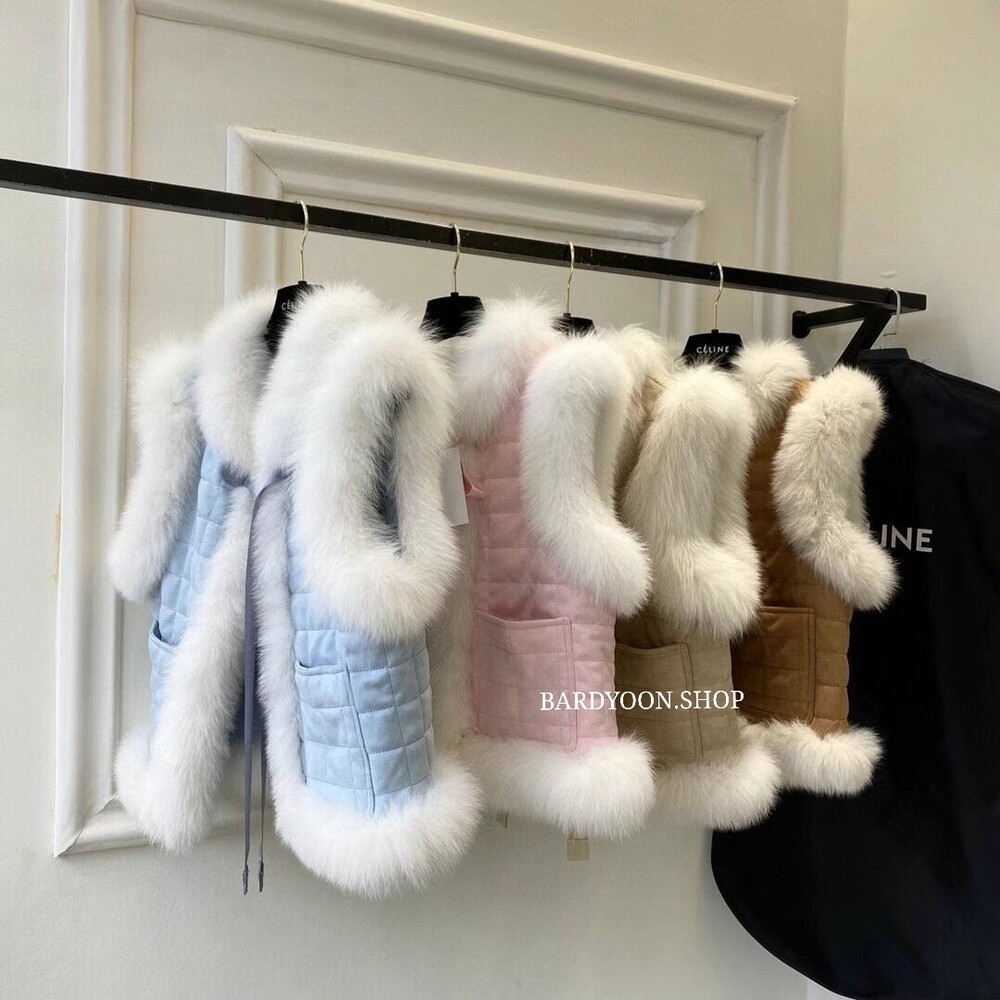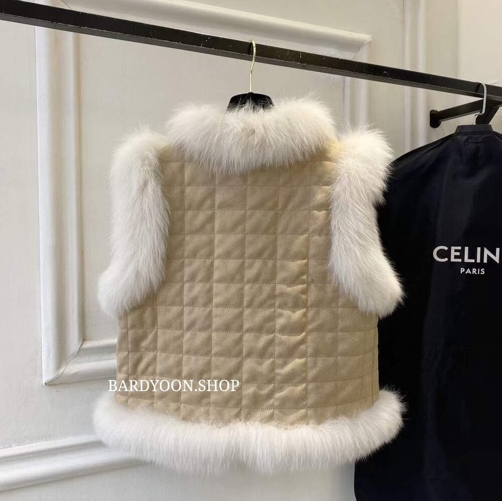 (수입) 셀 퀄팅 폭스 퍼 트리밍 조끼