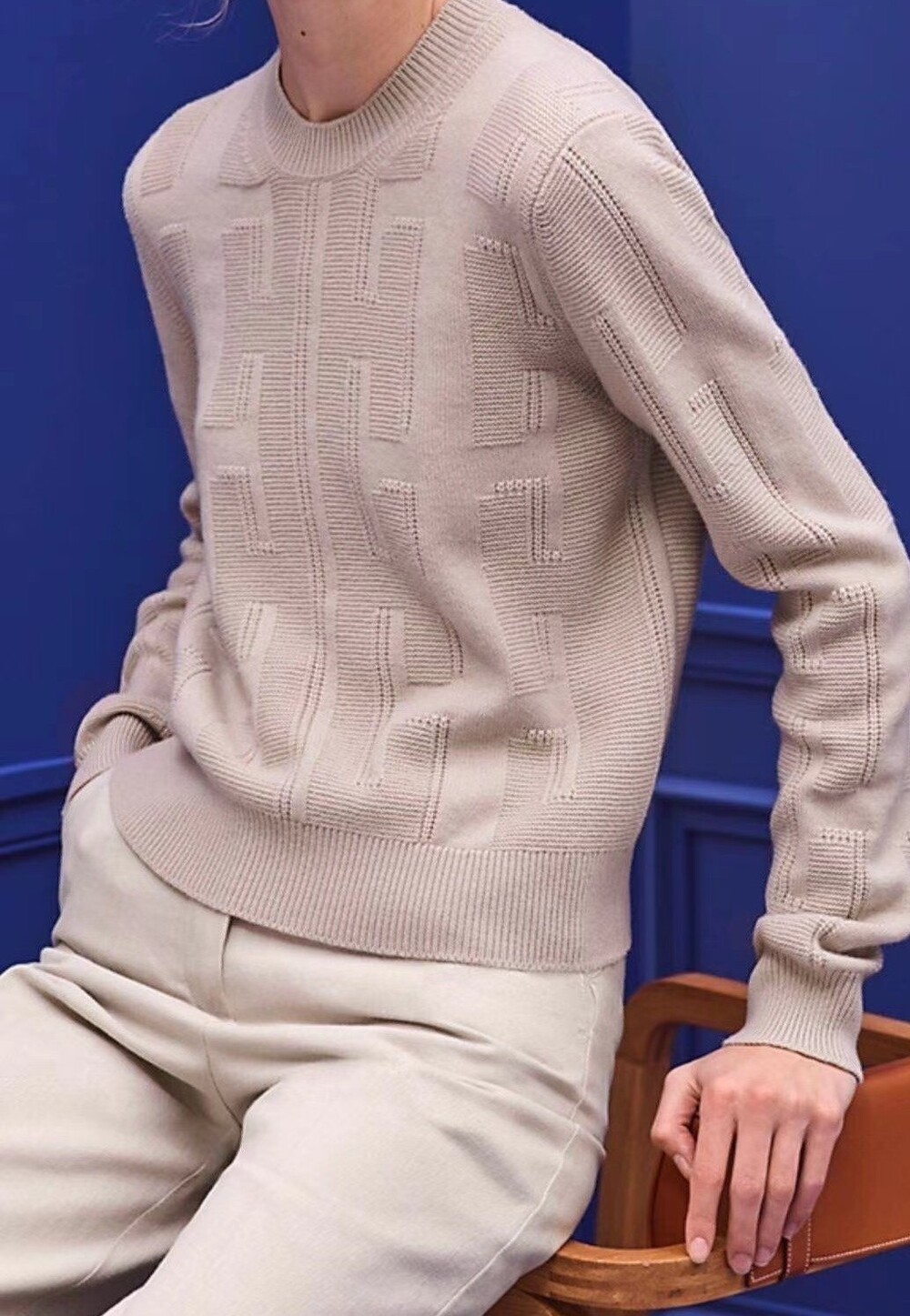 (수입) H 핸드메이드 짜임 라운드 캐시 니트 S