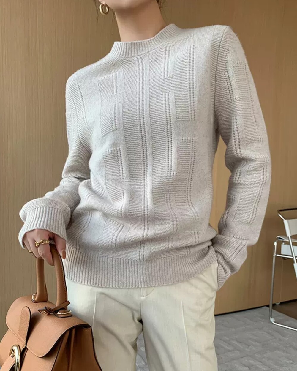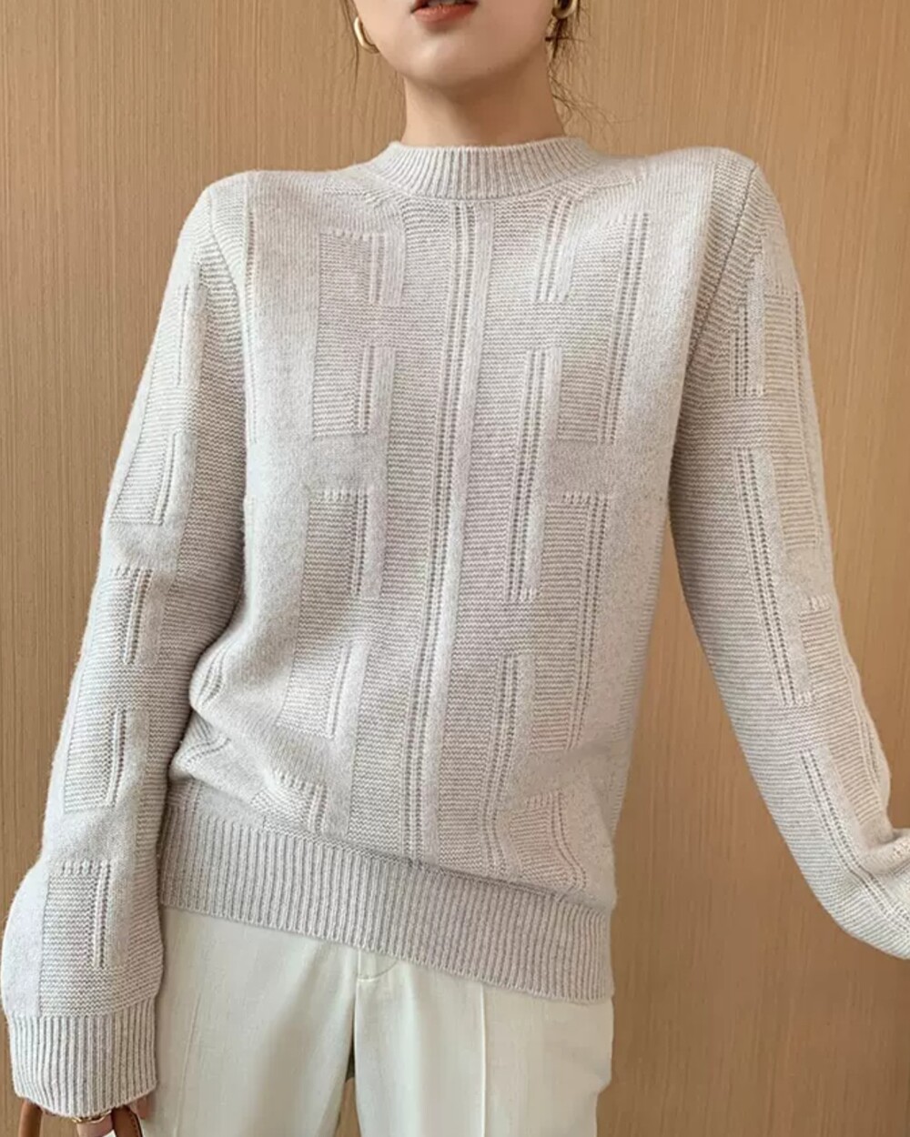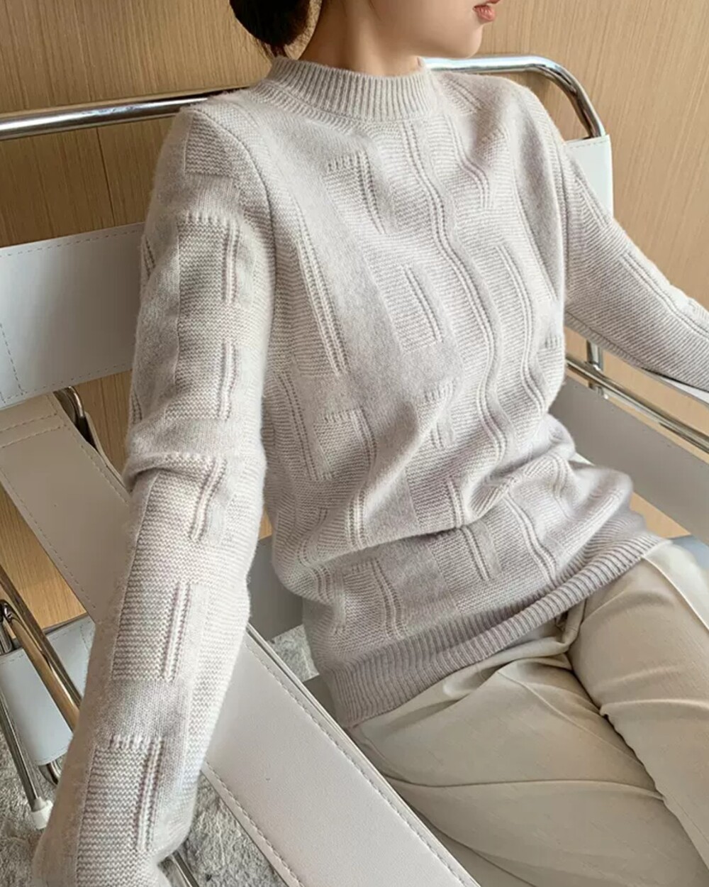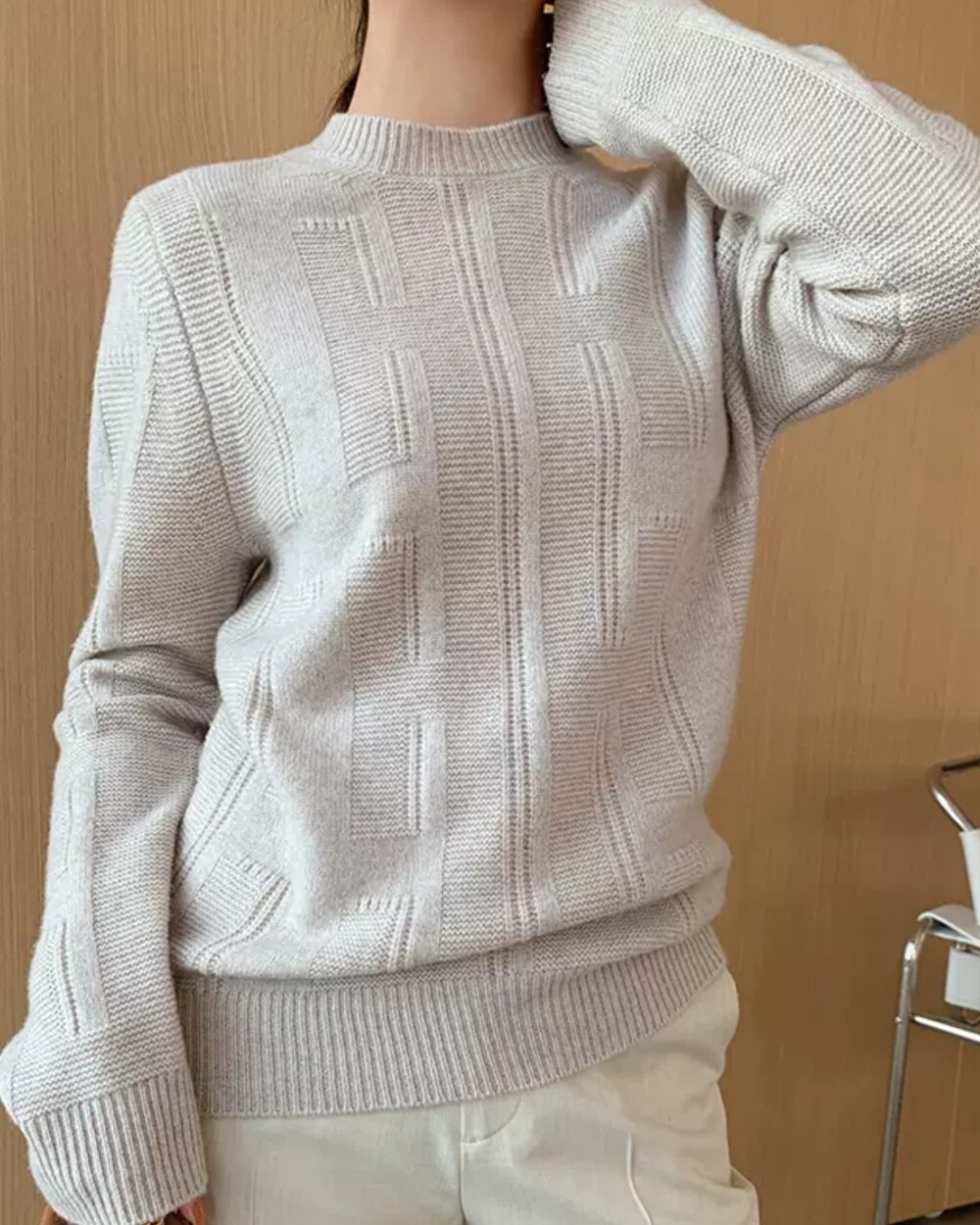 네추럴한 핏의 실용만점 라운드넥 캐시니트