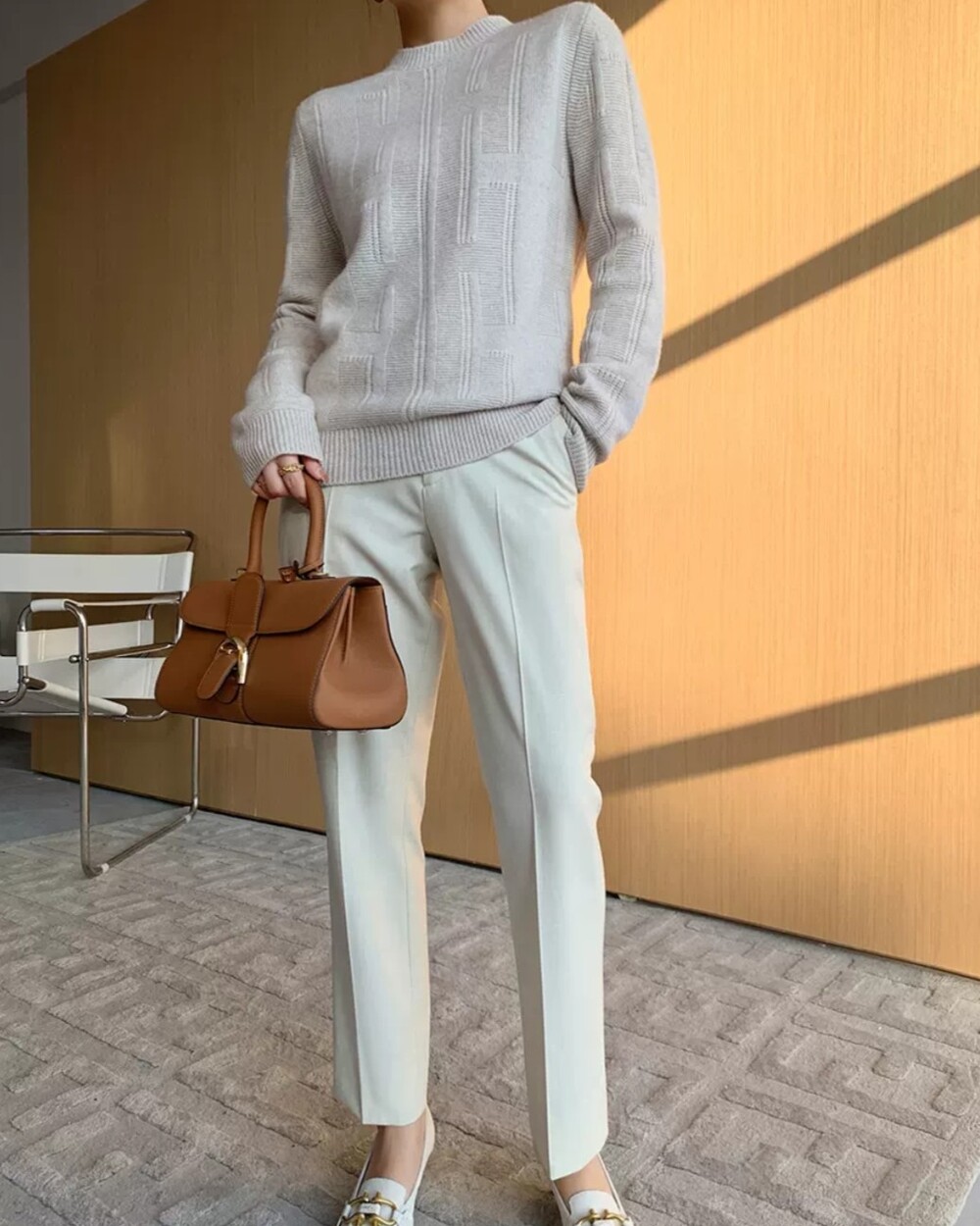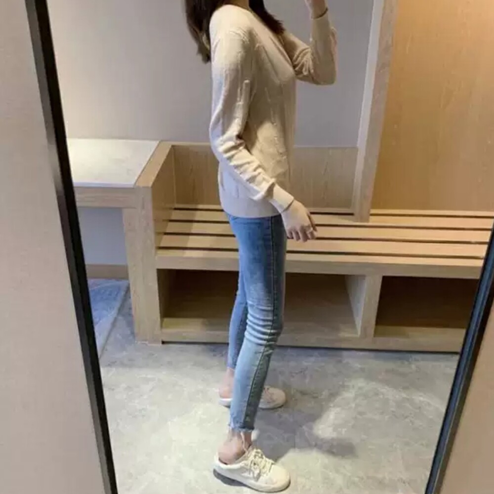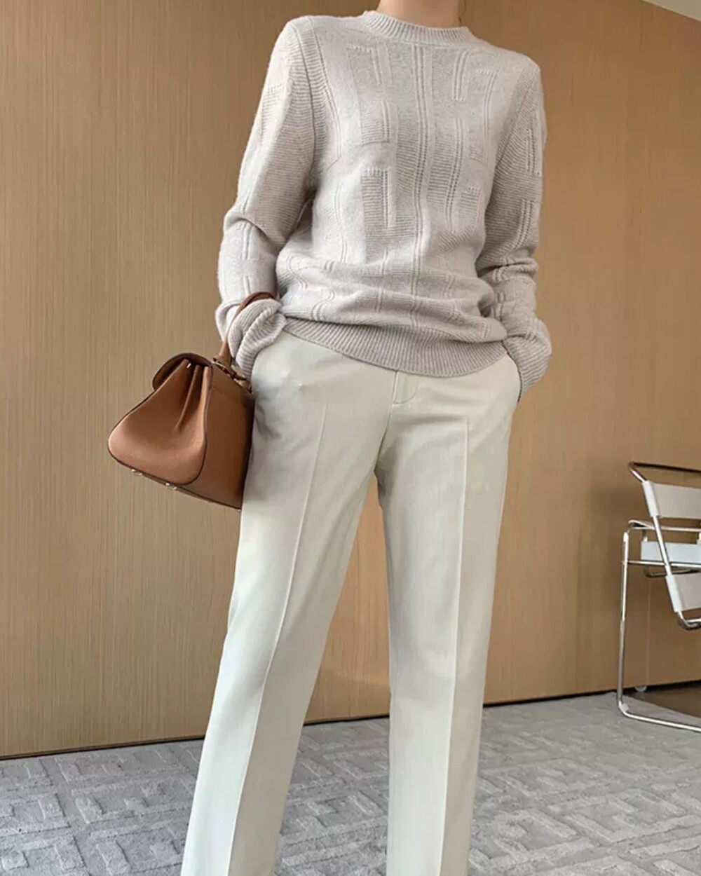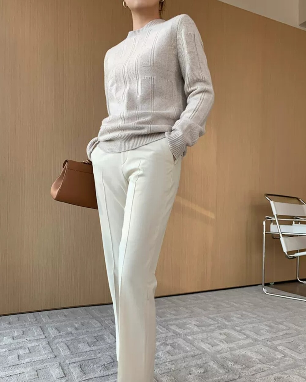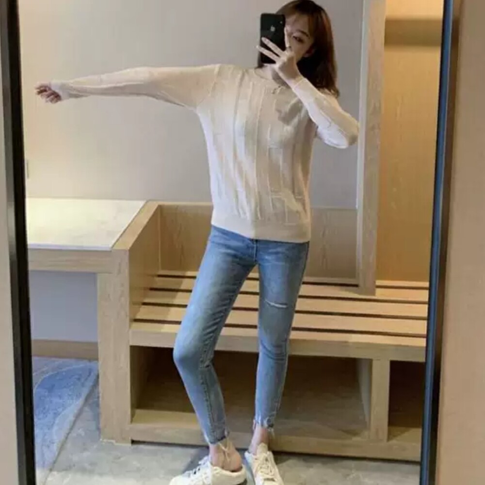 네추럴한 핏의 실용만점 라운드넥 캐시니트