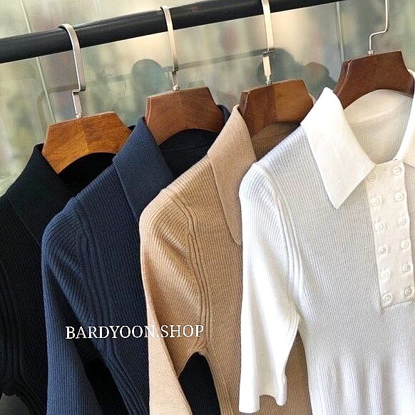 심플하고 네추럴한 핏의 카라 5부 니트!