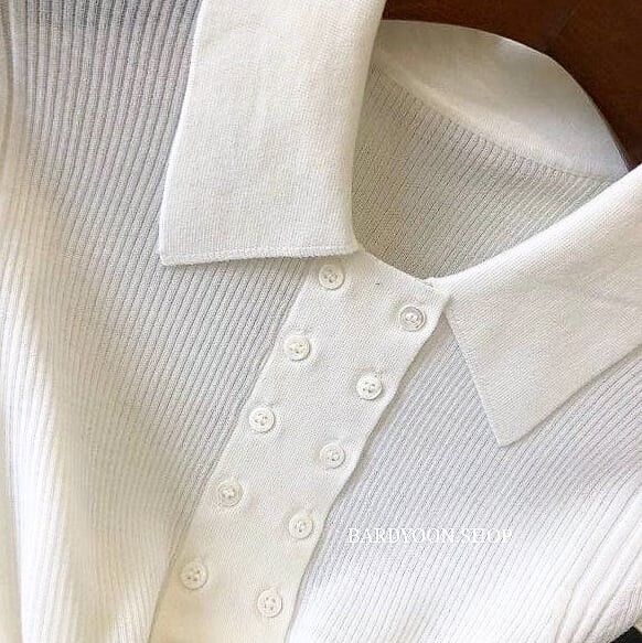 (수입) C 더블 단추 카라 골지 5부 니트 4color