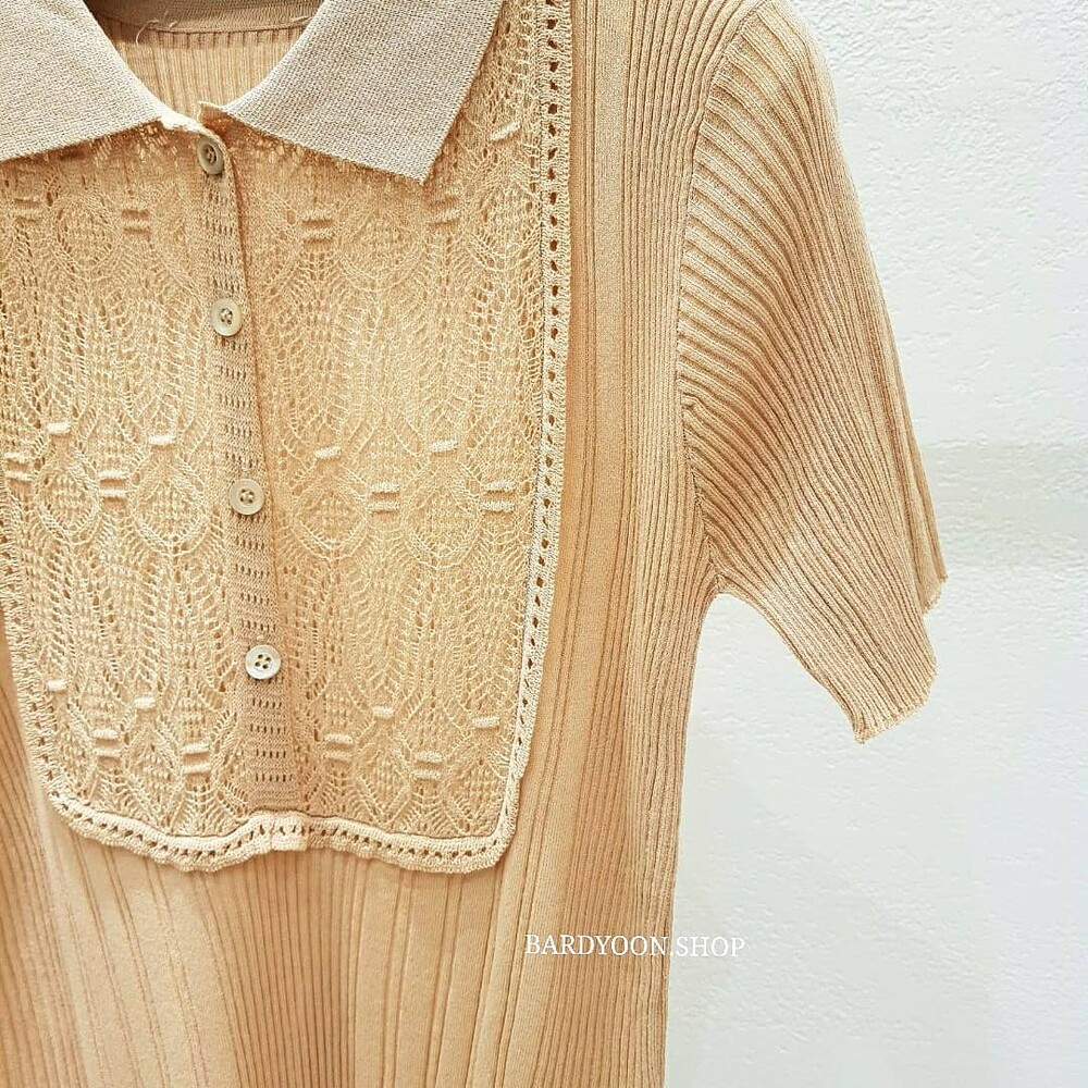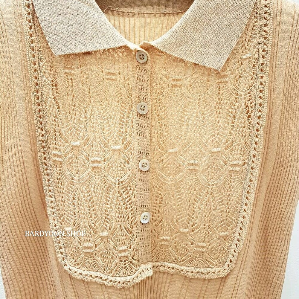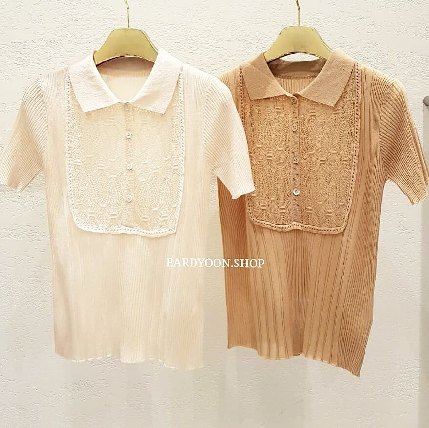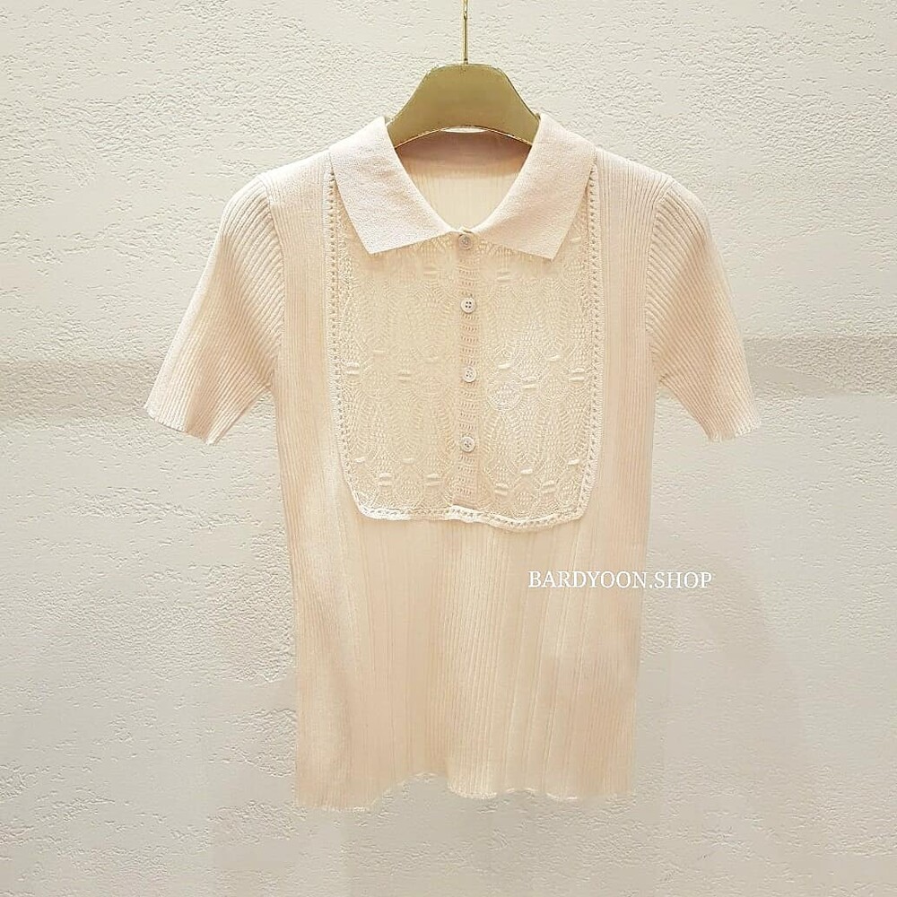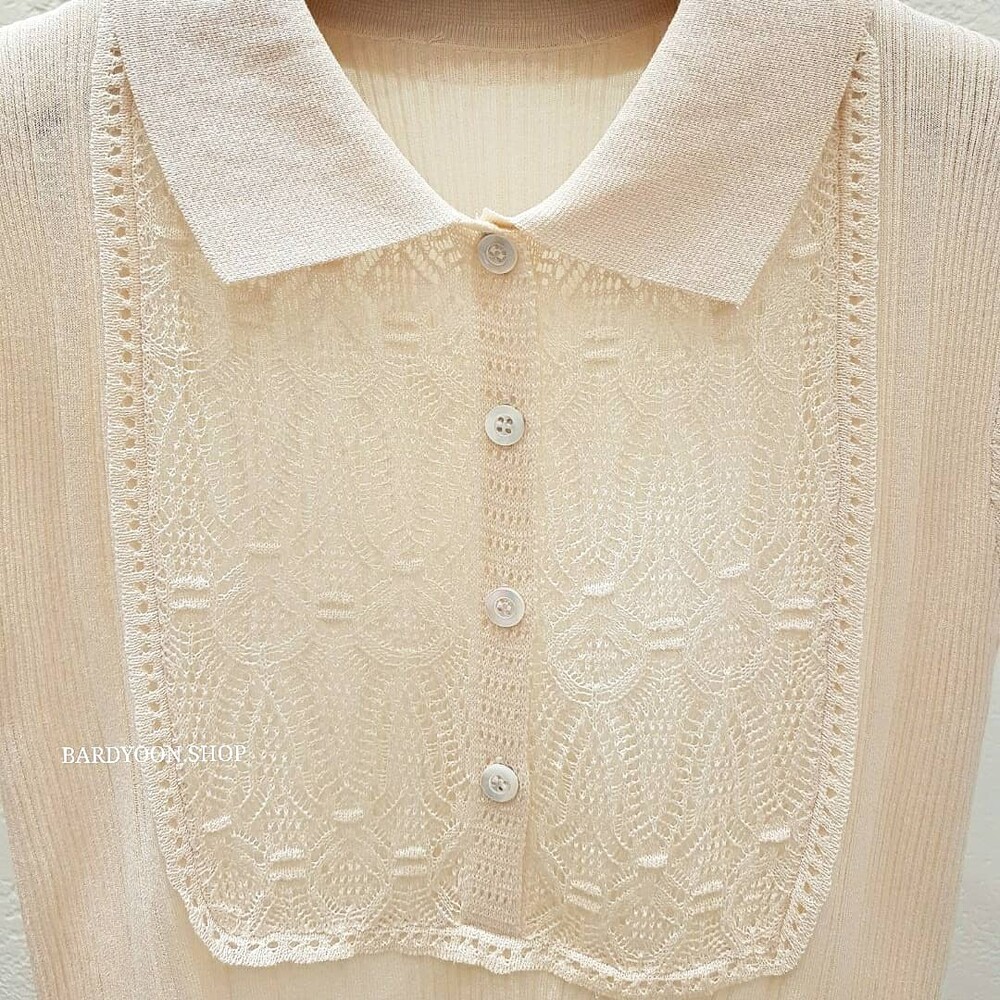 (수입) D 레이스 카라 반팔 니트 2color