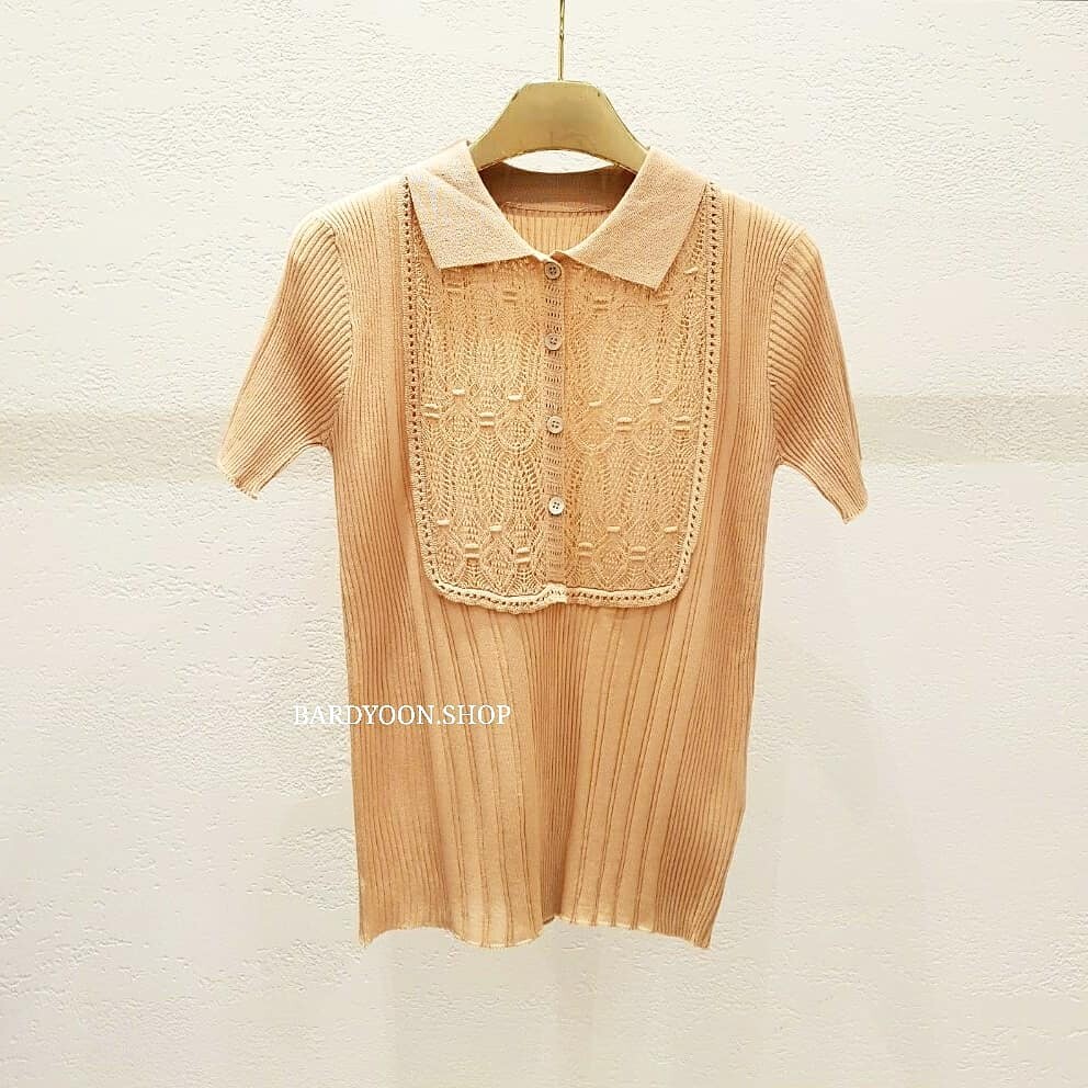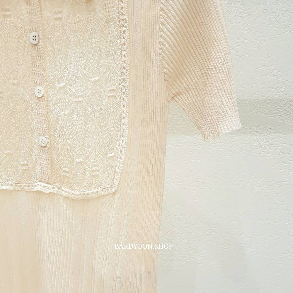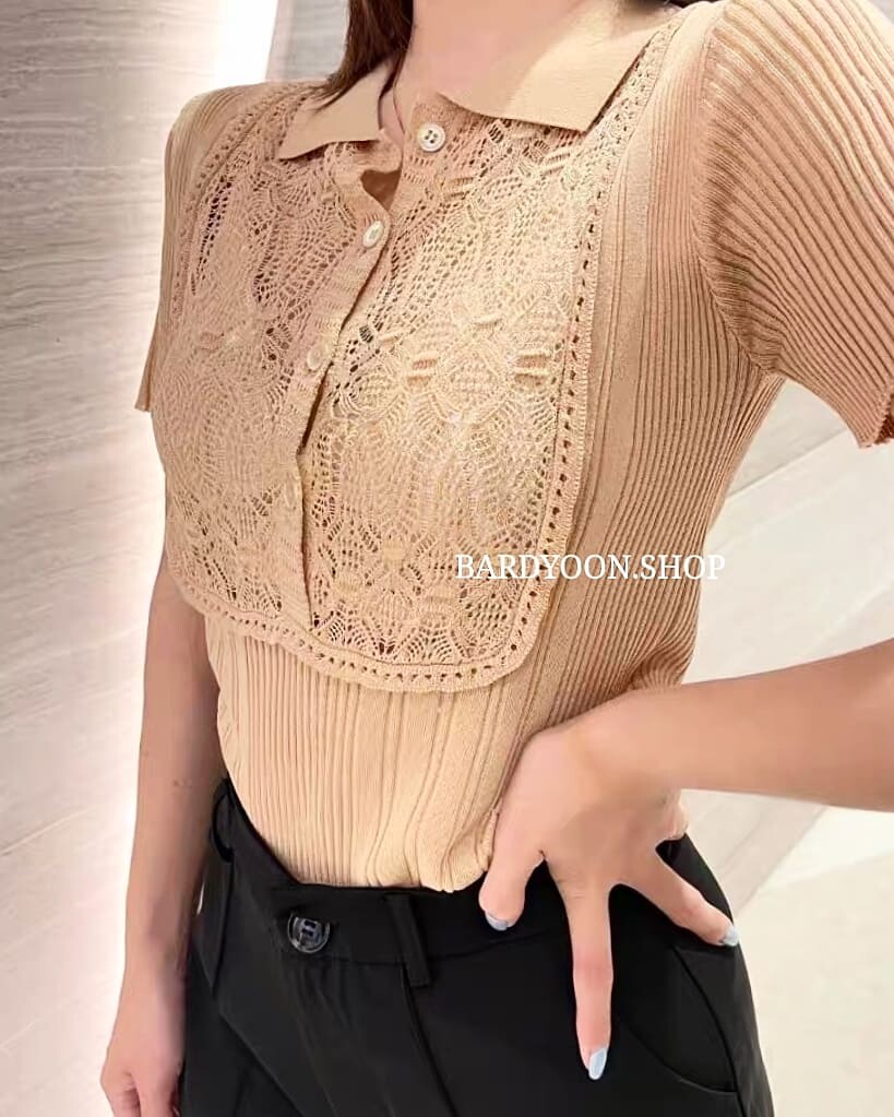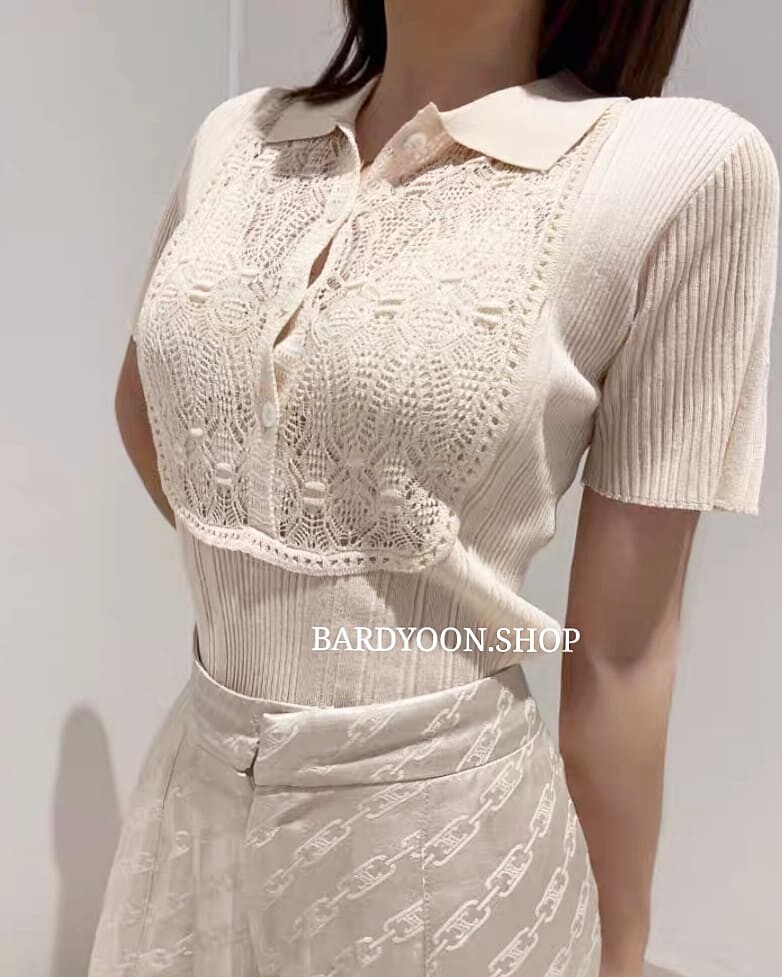 (수입) D 레이스 카라 반팔 니트 2color