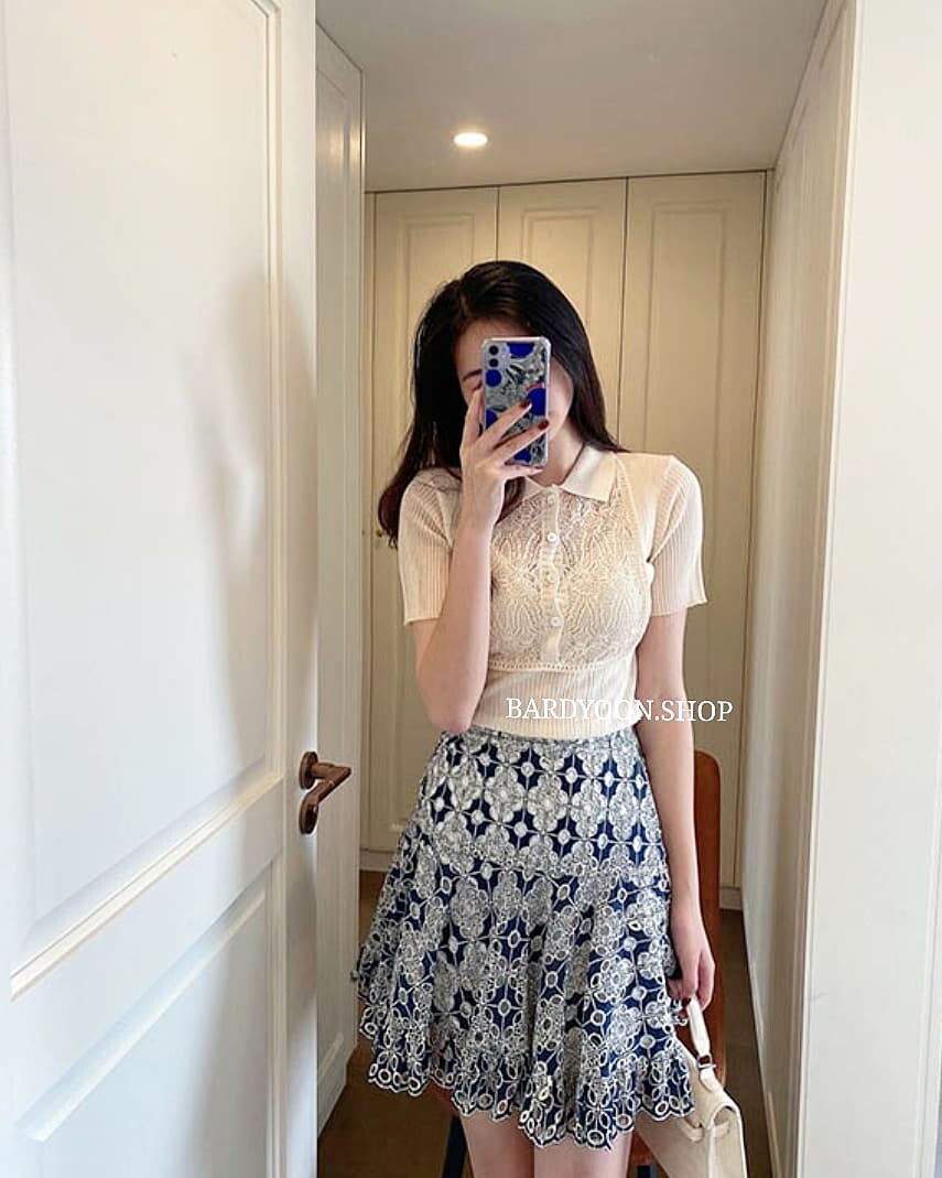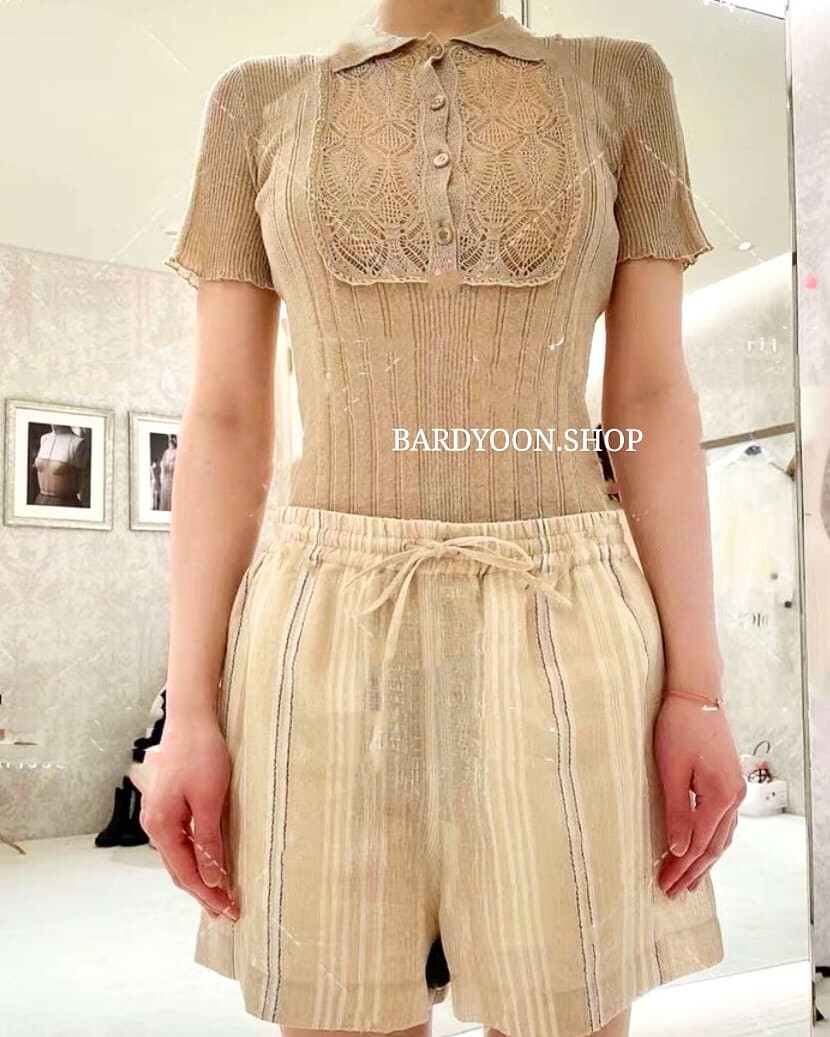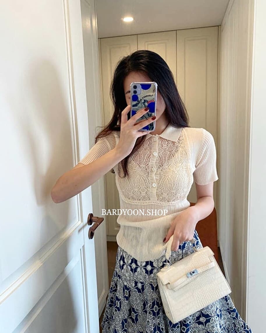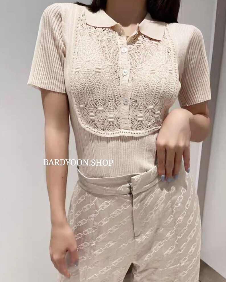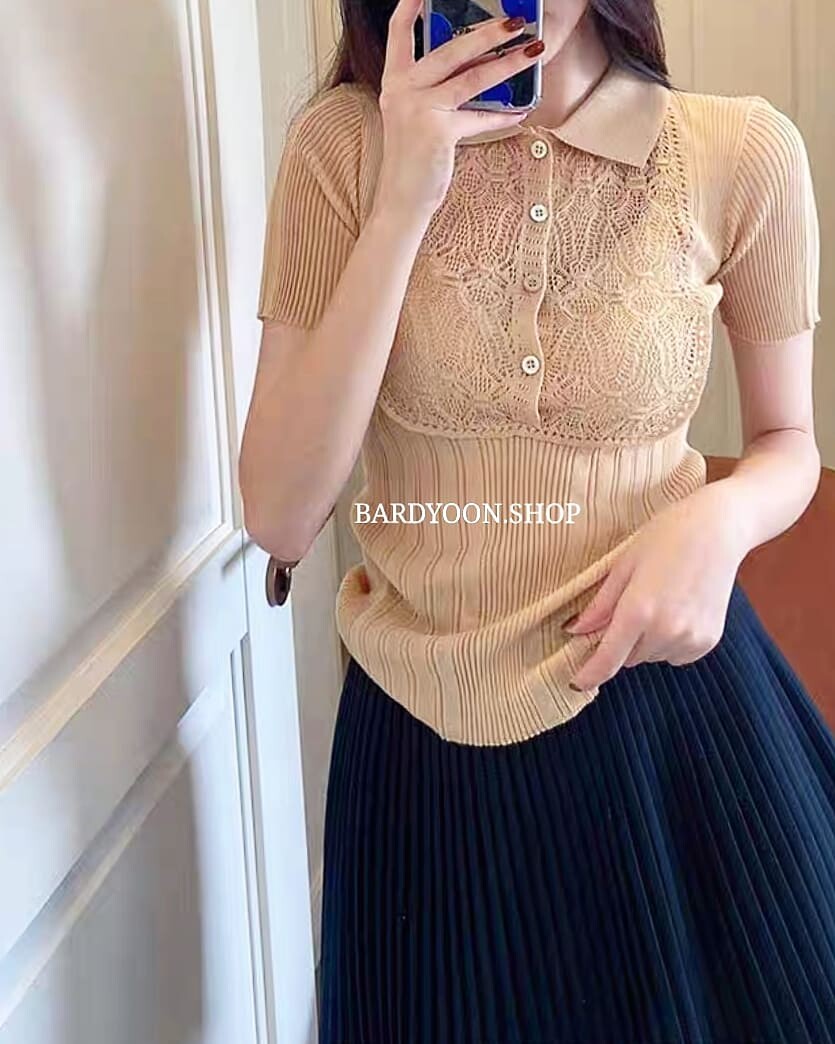 (수입) D 레이스 카라 반팔 니트 2color
