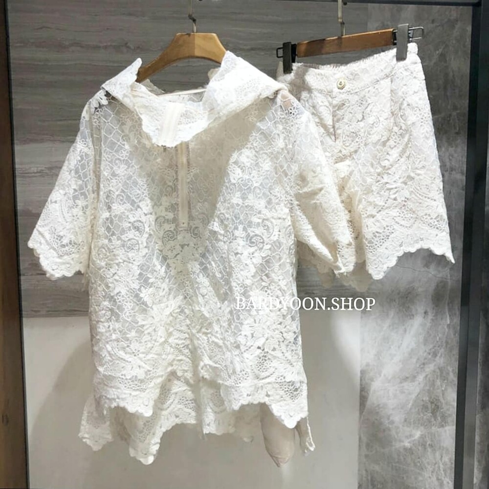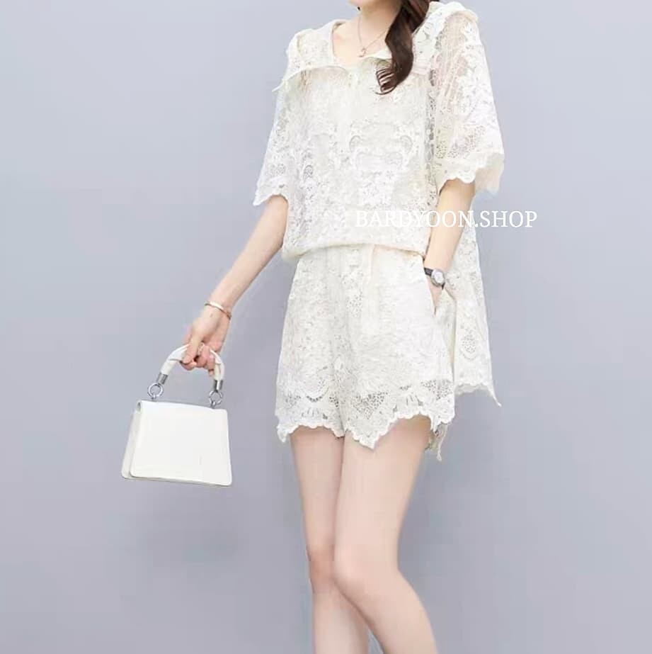 로맨틱하고 큐티한 느낌의 크리미한 셋업이예요.